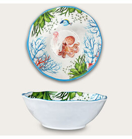 Arca ABISSI melamine kom 16x6cm. Licht in gewicht, stapelbaar, voor binnen en buiten. Abissi vond zijn inspiratie in de fascinerende en mysterieuze wereld van de diepte. Met intense kleuren en vloeiende vormen verfraait deze collectie uw zomerse tafels.